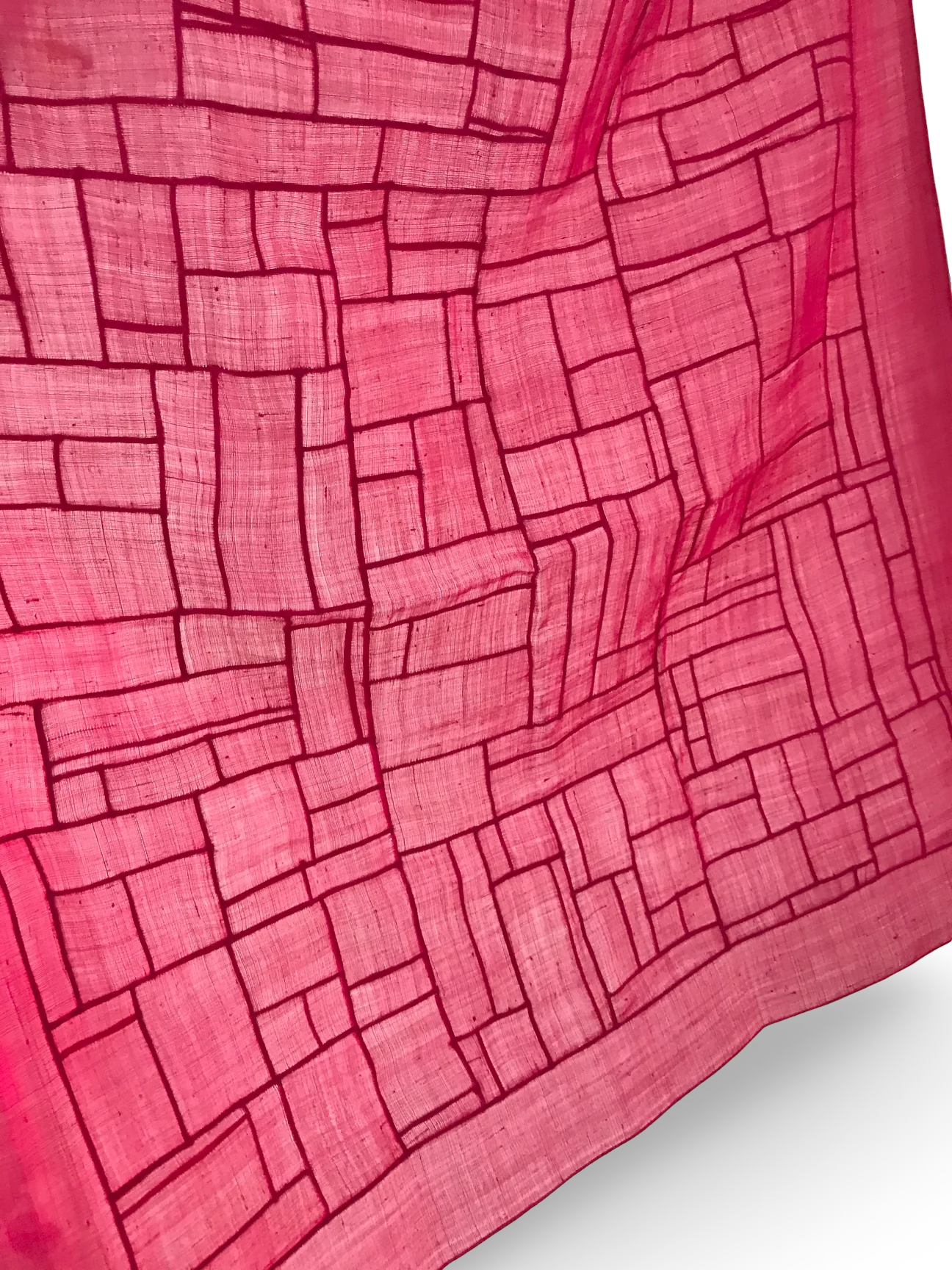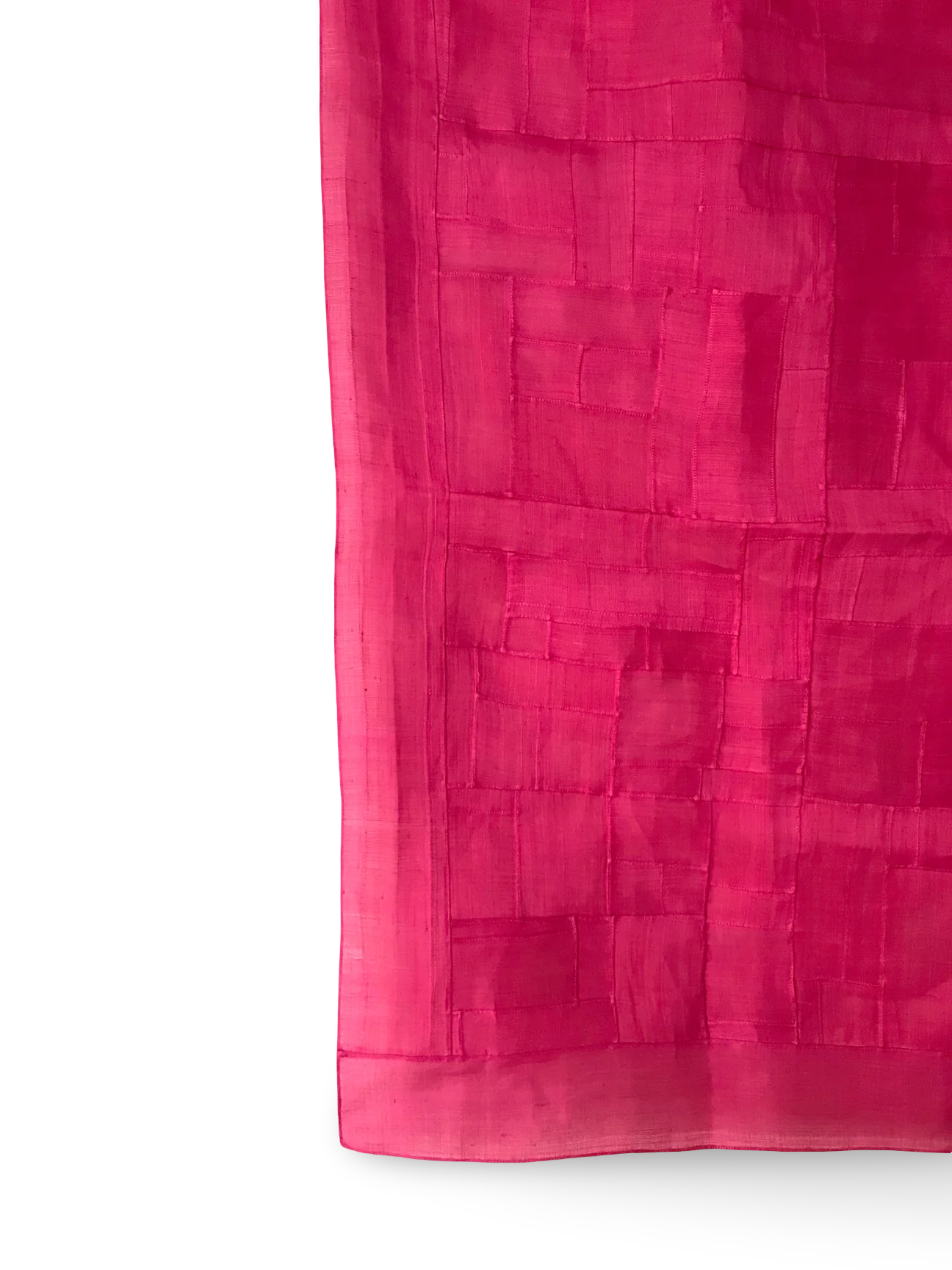 A Jogakbo is a style of patchwork, traditionally used to create domestic wrapping cloths (known as bojagi) from scraps of left-over fabrics. The scraps are sewn together using a triple-stitched seaming technique known as gekki, which results in a sealed, flat seam and gives the jogakbo their distinctive 'window pane' appearance. Patches are joined into squares and extended in an irregular, improvisatory fashion until a cloth reaches the required size. The jogakbo can include several colours composing a modern abstract pattern.